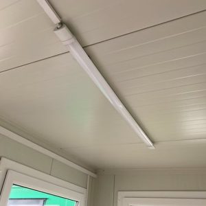1 Glasschiebefenster – 1 Sicherheitsrollladen aus Stahl – 1 Personaltür aus melaminbeschichtetem Stahl – 50 mm Steinwolleisolierung – strapazierfähiger Innenboden aus Poly – elektrisches Basispaket – 1 Leuchte – 1 Lichtschalter – 1 Heizung – 1 Doppelsteckdose – 1 externer Trennschalter …