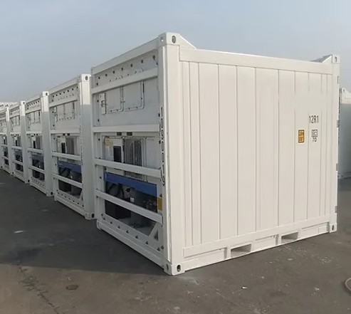 Dieser Container ist zweifellos der am häufigsten verwendete Container für die Lagerung von Produkten, die bei Minustemperaturen gelagert werden müssen. Offshore-Kühlcontainer sind mit Maschinen ausgestattet, die mit 380 V Drehstrom in einem Temperaturbereich von -30 °C bis -30 °C betrieben werden. Der 10 Fuß große Offshore-Kühlcontainer besteht aus Cortenstahl. Der Boden besteht aus Stahl. Der 10 Fuß große Offshore-Kühlcontainer hat ein Eigengewicht von 2.820 kg und eine maximale Nutzlast von 8.000 kg. Dies entspricht einem Gesamtbruttogewicht von 10.820 kg.