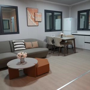 Erleben Sie modernes Wohnen mit unserem großzügigen 76 m² großen Container Tiny House. Dieses durchdachte Wohnkonzept vereint großzügigen Wohnraum mit innovativem Design und höchstem Wohnkomfort. Dank unseres umfassenden Service müssen Sie sich von der ersten Planung bis zur schlüsselfertigen Übergabe um nichts kümmern.